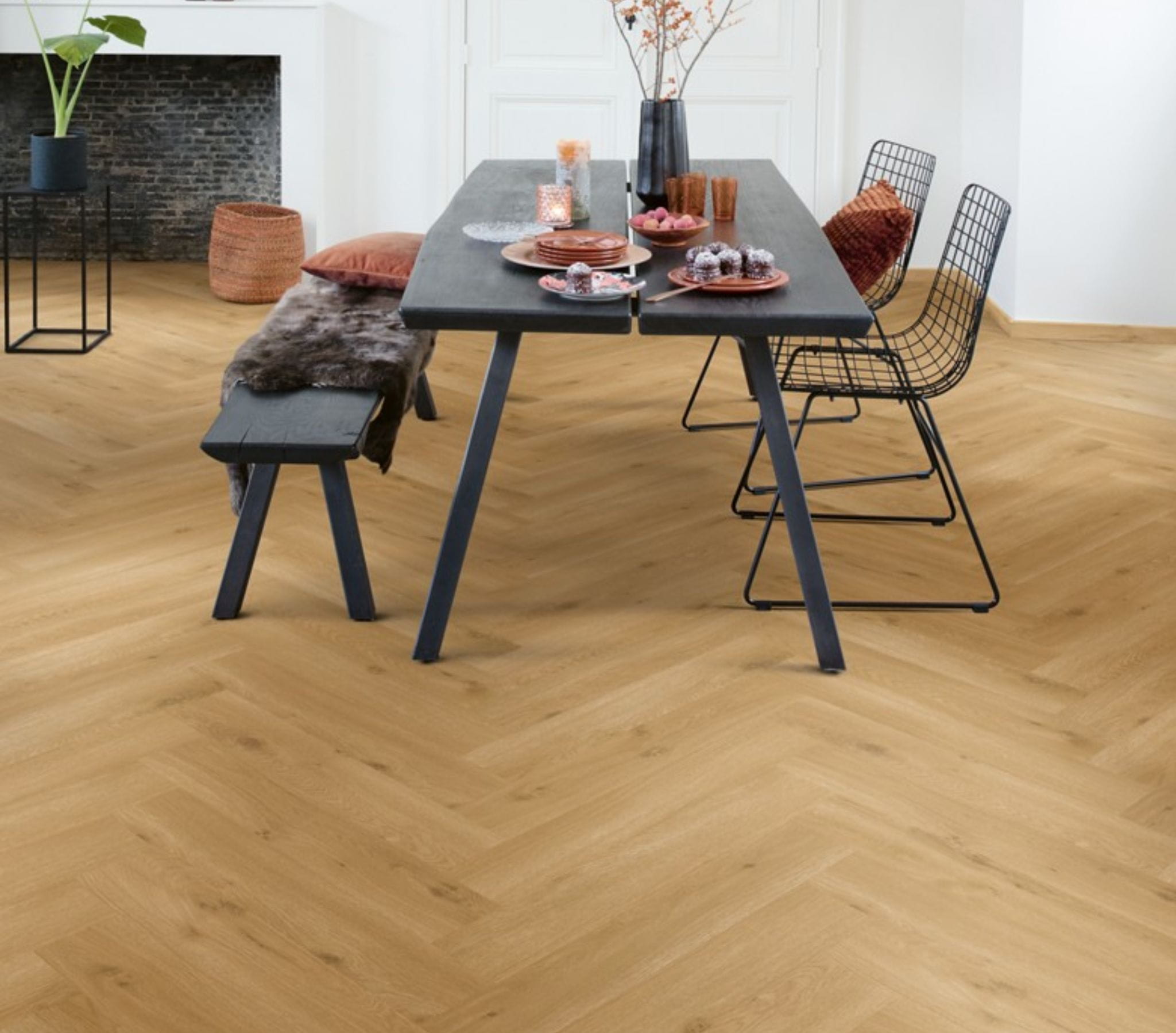 Kolekcja winylowych podłóg w jodełkę Pristine to odzwierciedlenie dążenia do doskonałości – łączy ponadczasową klasykę z nowoczesnym designem. Elegancki wzór jodełki w połączeniu z subtelną kolorystyką i wiernym odwzorowaniem drewna sprawia, że podłoga staje się wyjątkową ozdobą wnętrza.